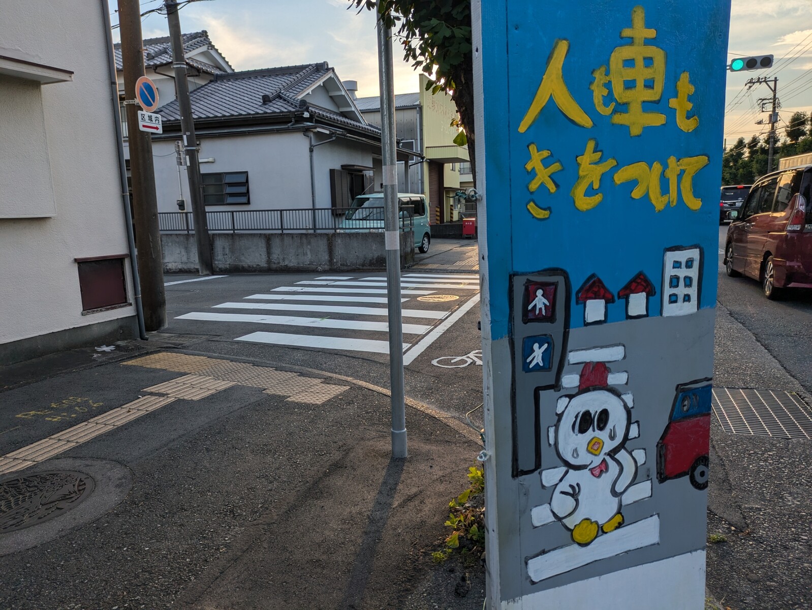 とっても目を引く立て看板を発見してしまった。「人も車もきをつけて」