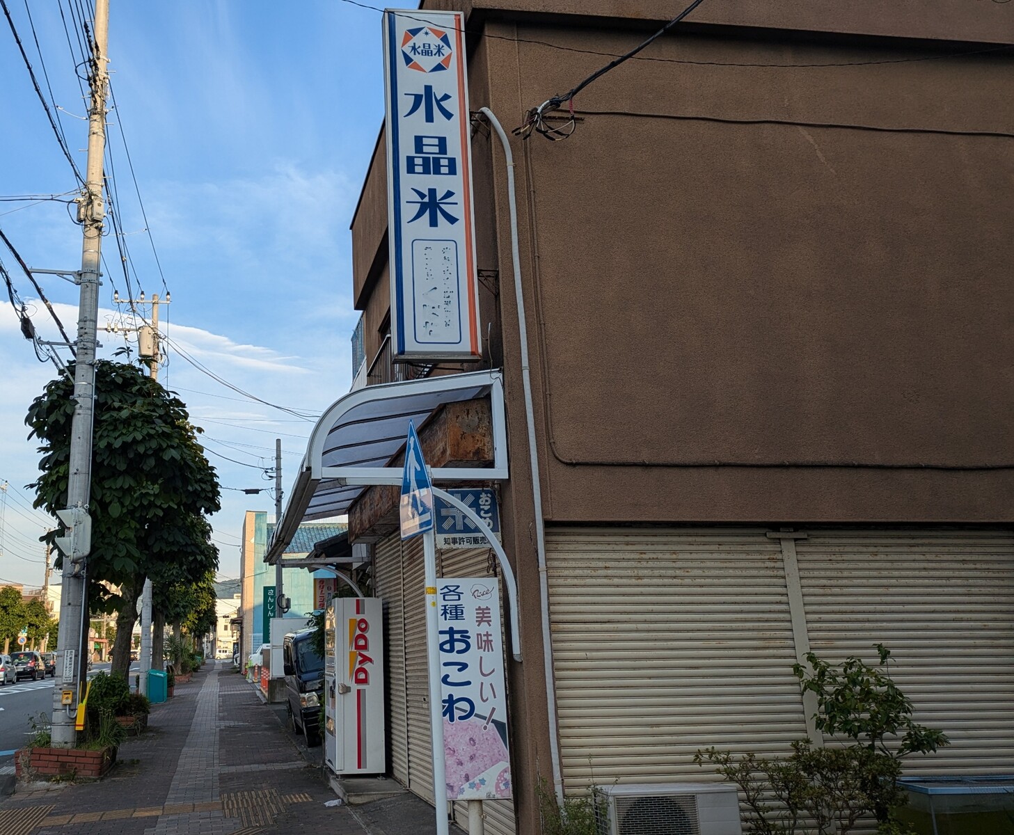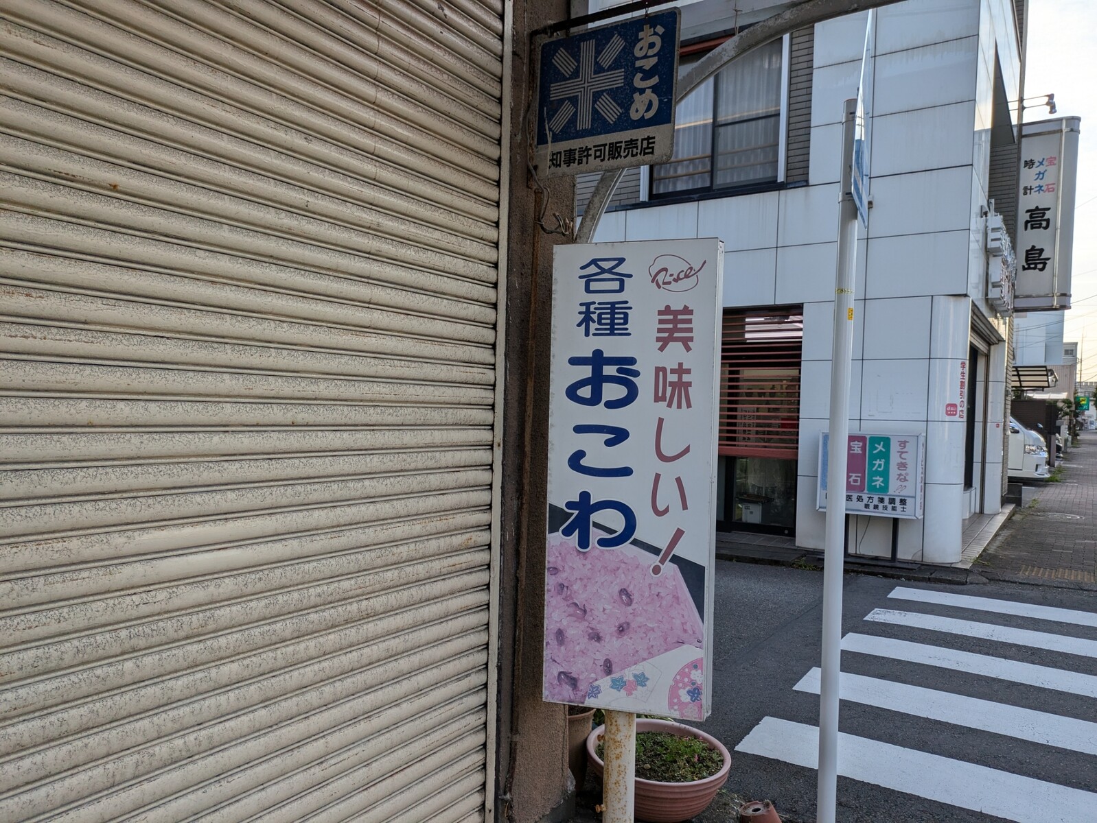 さっきの看板とは別のお米屋さんの手前の横断歩道のあたりに、