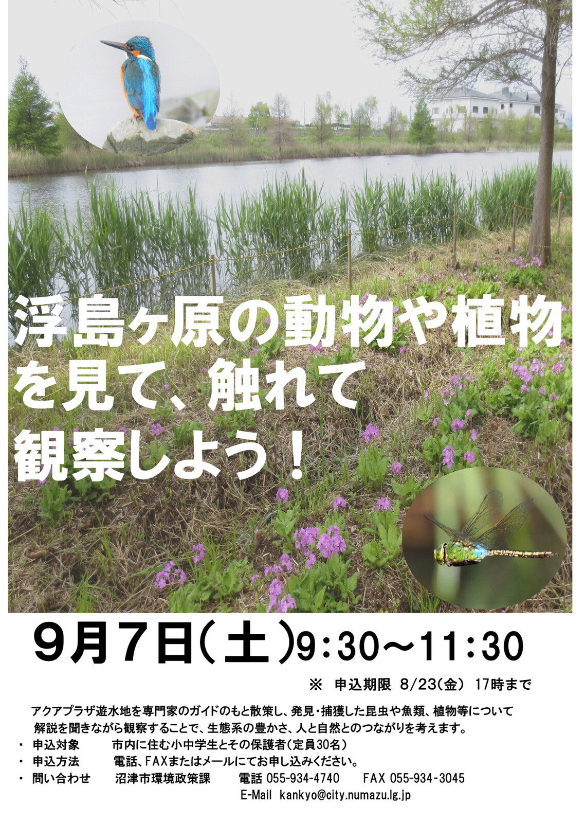 その活動の一環「浮島ヶ原の自然観察会」が9月7日に開催されるそうです。9時30分から11時30分の2時間一本勝負。ただし、雨が降ったら室内プログラムに変更されるとか。