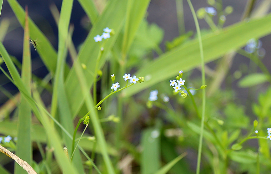 アクアプラザ遊水地ではシーズンになると、非常にめずらしい「ナヨナヨワスレナグサ」とうかわいらしい花を見ることもできるとか。