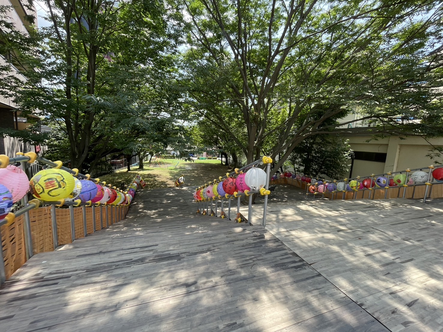 ブランコとかがある下の公園には、階段で行けるようになったりしてる。