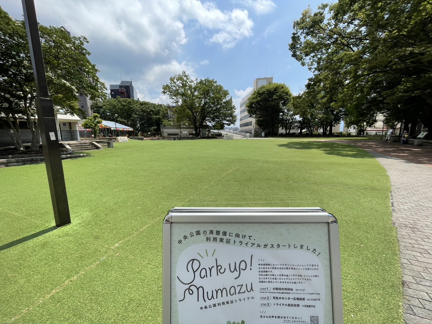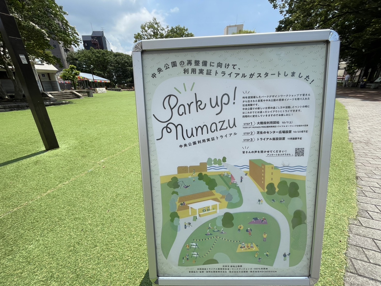 中央公園再整備に向けて、利用実証トライアルがスタートしました!ってことなので、いろんな方の意見を取り入れていく社会実験なんだそう。