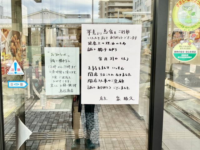 そんな鳥佐商店ですが、健康上の理由で8月いっぱいで閉店されるそうです。