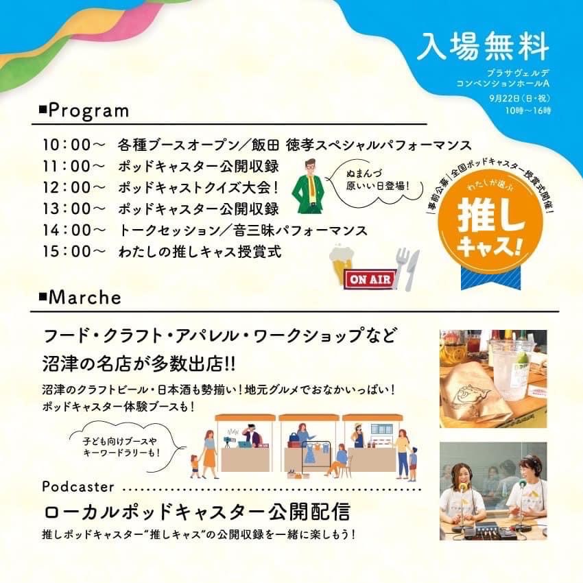 聴く・学ぶ・味わう・繋がるの4つのエリアで構成されるという第1回みんなのポッドキャストフェス@沼津。