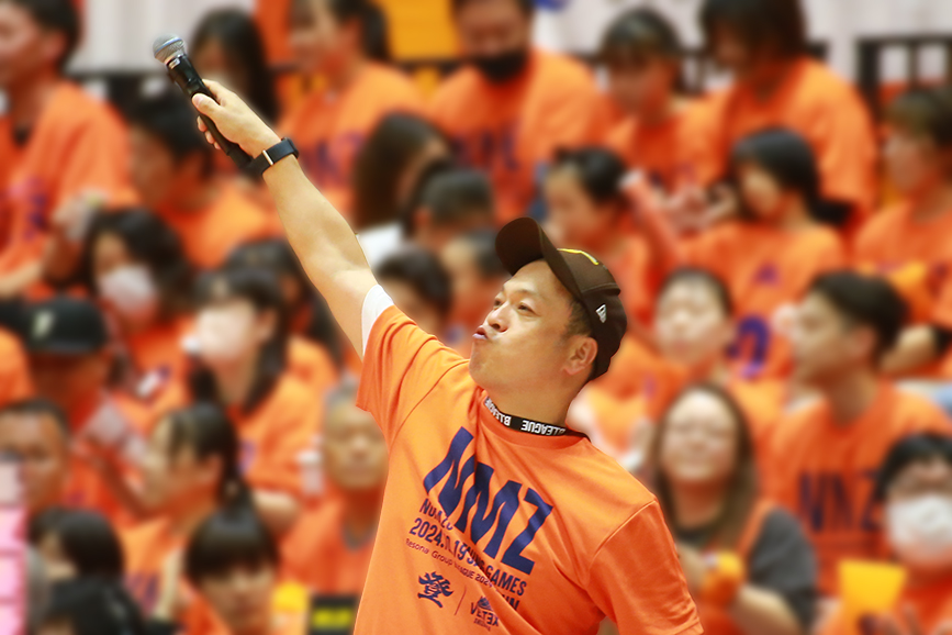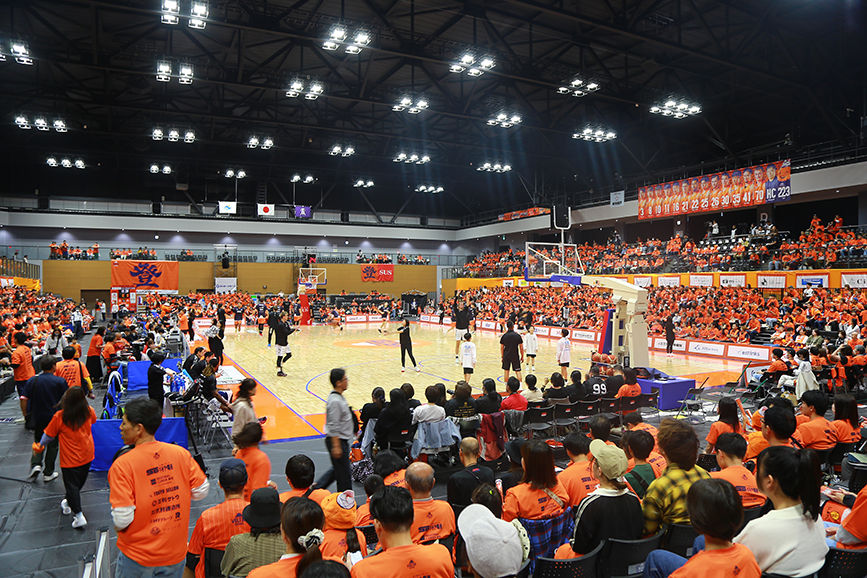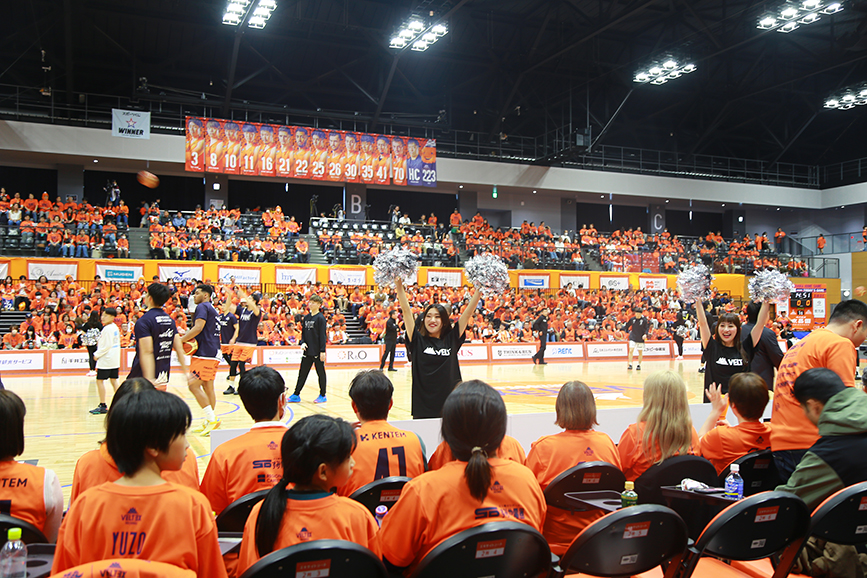 会場を盛り上げるアリーナMCのDJケチャップさんがまたウマいんです。対戦前まで4連勝で負けなしだった強豪鹿児島レブナイズを迎え、結果は1勝1敗のタイ。両日とも白熱した好ゲームでした。