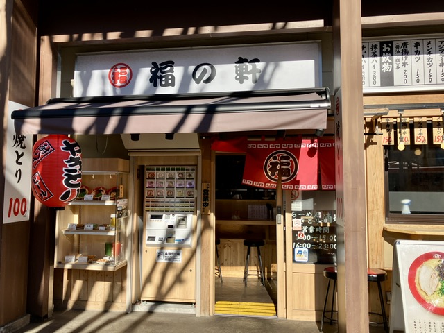 目に飛び込んでくるのが豚骨ラーメンの看板とやきとりの赤提灯。