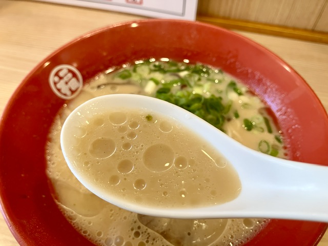 見た目より脂っぽくなく、臭みもないマイルドな豚骨スープ。