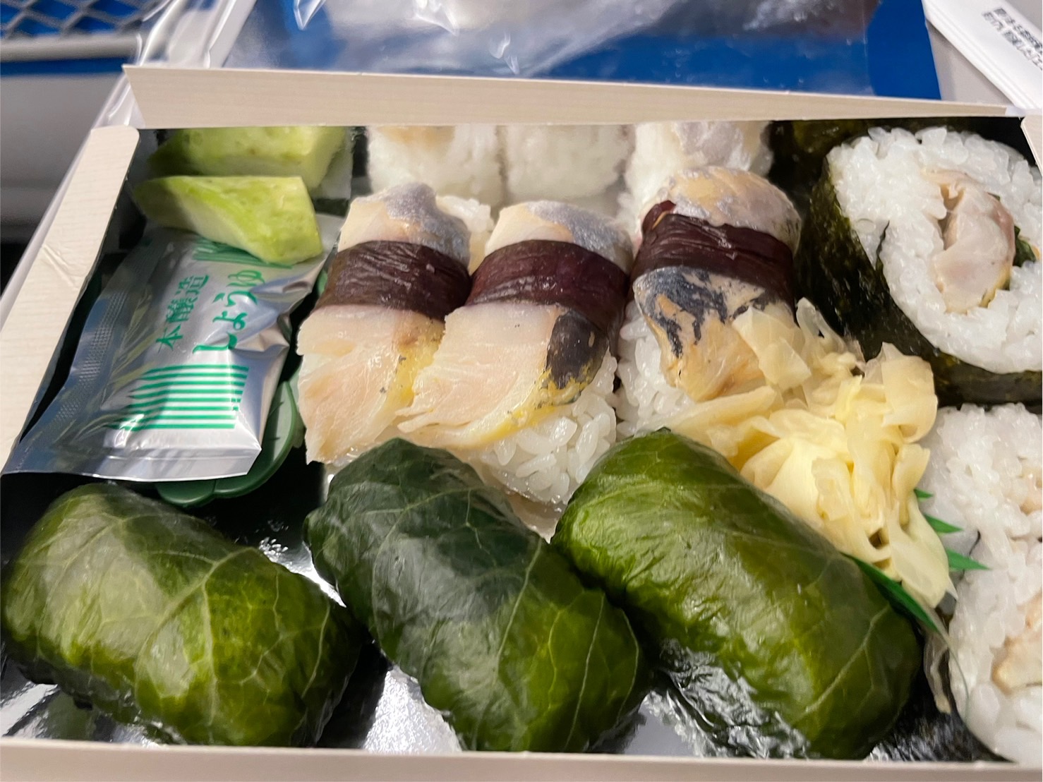 沼津観光ポータルよりしまやん@ぬまつー的には、このわさびの葉で巻いたわさびの葉巻きが、スーパー最高に好き。中に鯵のお寿司が入ってるんだけど、わさびの葉のシャキッと感と、ほんのりわさびの香りがツーンとくるのが絶妙なのですよ。沼津特産の鯵づくしのお弁当沼津名物「港あじ鮨」は駿河湾産の真あじを使用し、見た目にも鮮やかなわさびの葉で巻いたわさび葉巻き、しその葉巻きにぎり鮨、青じそと白ごまを加えた太巻きの3種類の鯵鮨をお楽しみいただけます。伊豆天城山の生山葵をすりおろしてわさび醤油でお召し上がりください。