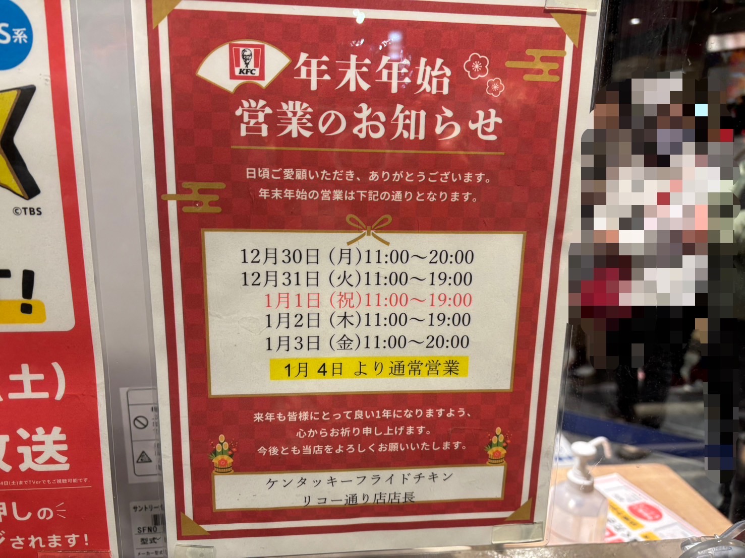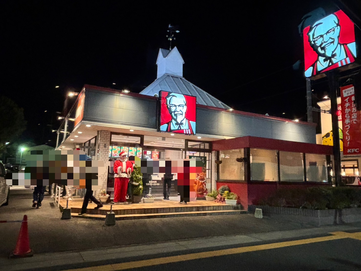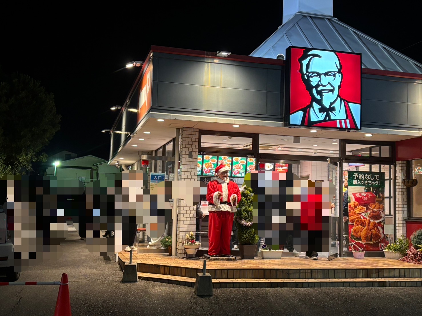 これは去年の夕方16時ごろ。何年か前からクリスマス用メニューが登場してて、クリスマス時期は予約制になってるっぽい。駐車場もかなり混んでて、警備員さんも出動してた。18時ごろには、お店からはみだして、駐車場の方に20組ぐらい並んでた。年末年始も営業しているみたいで、ありがたい。年末年始とか、お盆とか、なんかの集まりの時に、おみやにケンタッキーを持っていくとヒーローになれる。