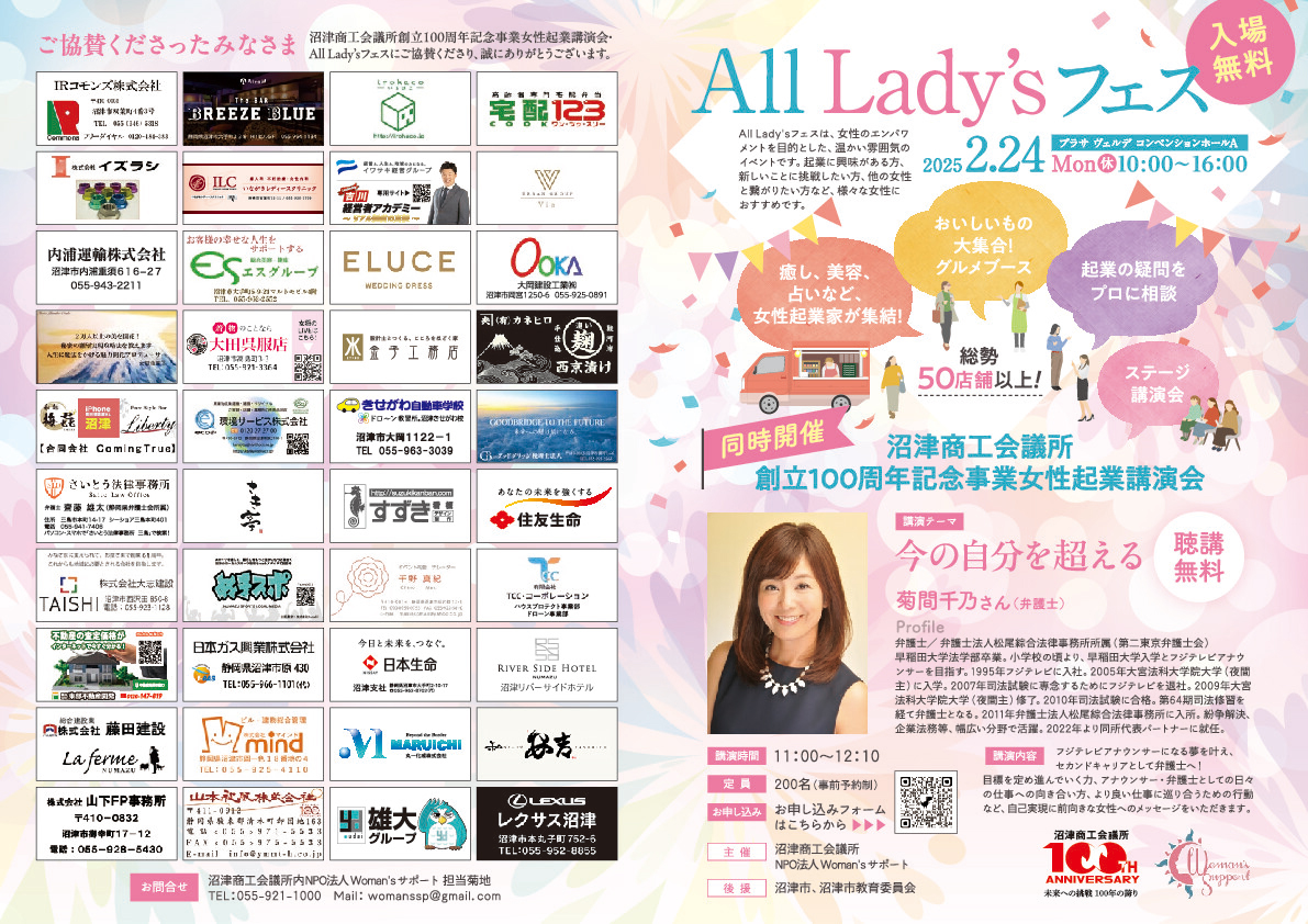 2月24日に、沼津商工会議所の創立100周年を記念して、All Lady'sフェス(オールレディーズフェス)が開催されます。