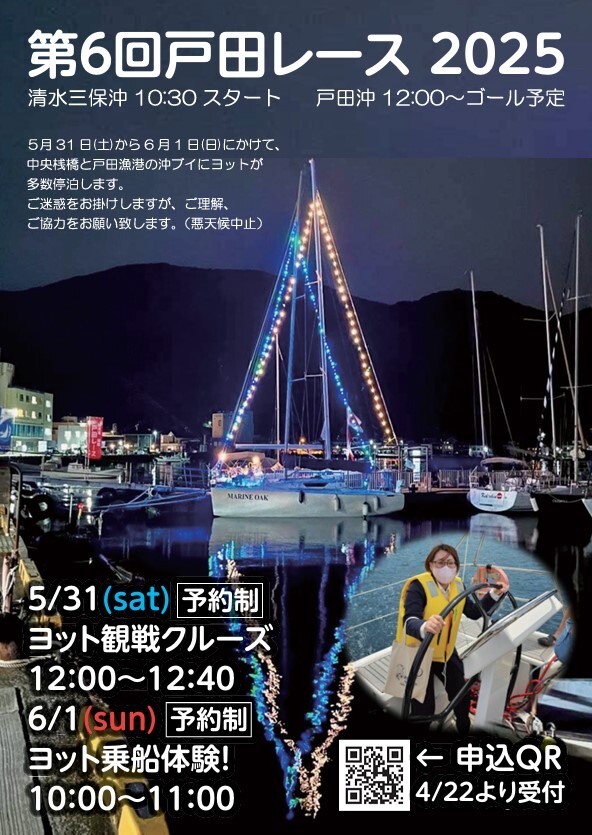 日本一深い駿河湾を横断するヨットレースが5月31日に開幕します。ゴール地点の名前をとって戸田レース2025というんだとか。