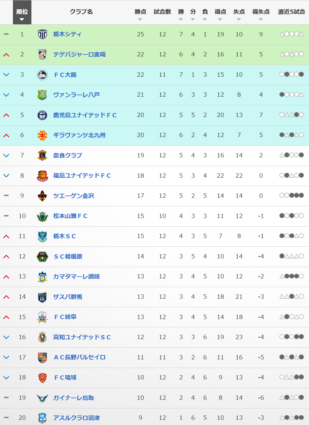 明治安田J3リーグの順位表 より引用