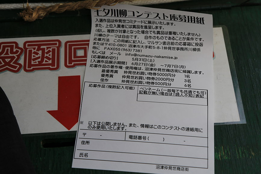 今年も沼津仲見世商店街の七夕川柳コンテストが開催されます!エントリー期間は5月31日までということで、現在旧マルサン書店前に応募箱が設置されています。