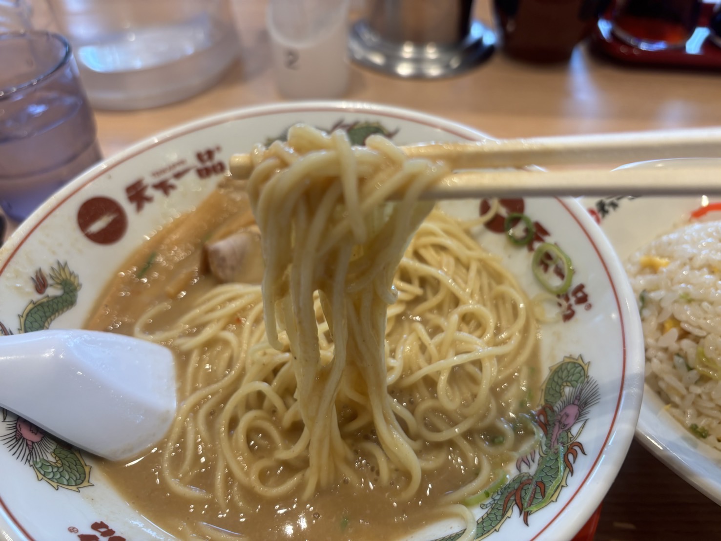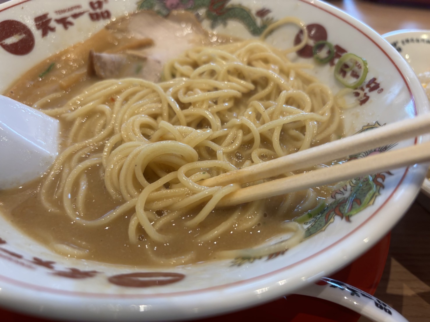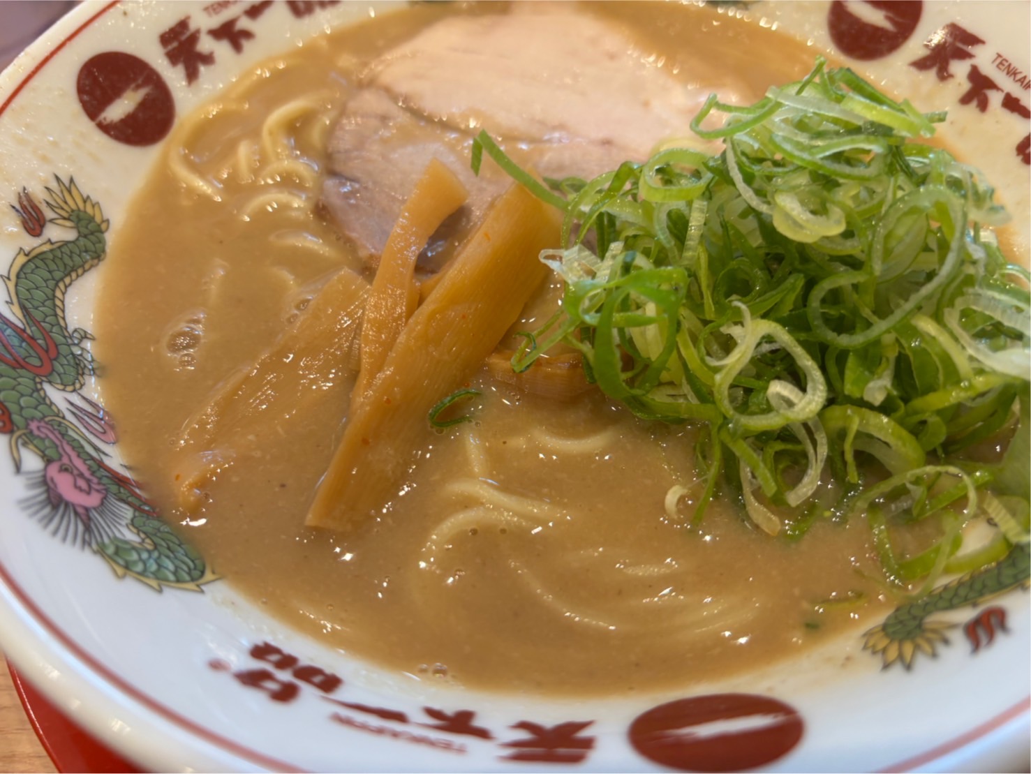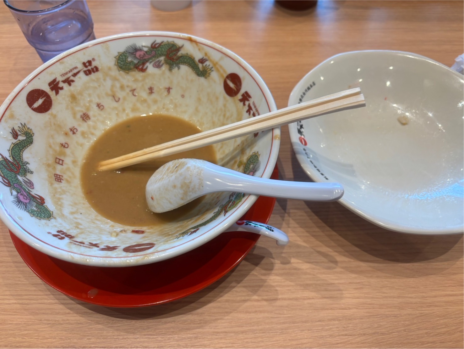 一気にススる。くぅーーーっ。これだ。お久しぶりです。テンイチ。食べたことない人は食べ慣れないので、3回ぐらい食べに行かないとクセにならないかもなので、そういうモチベで食べに行っていただきたい。あぁ、うまー。