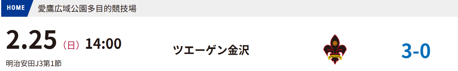 ツエーゲン金沢と対戦!