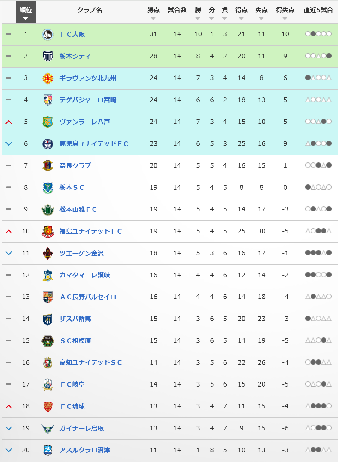 明治安田J3リーグの順位表 より引用