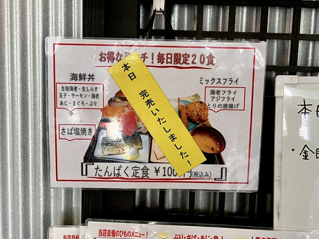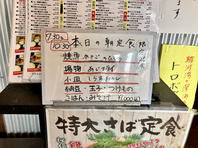 ちなみにたんぱく大国には、大あじ干物、とり唐揚、あじたたき納豆などからなる、その名も漁師の朝飯というメニューもあります。