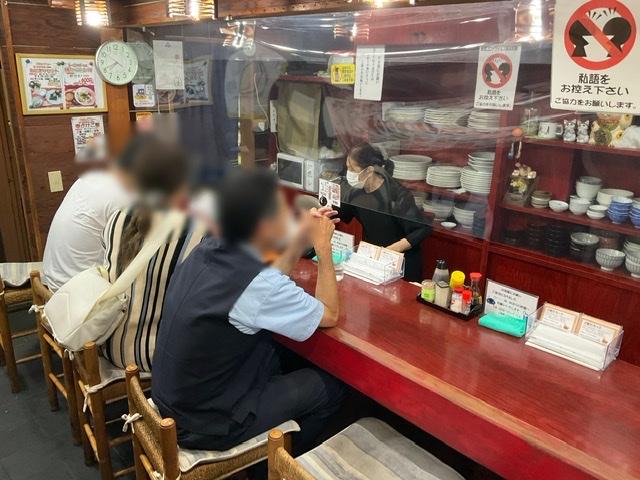 入口の左手には、入店前にオーダーを紙に書いて渡すための台が置いてあったんですよね。昔ながらの赤い缶の灰皿もあったような。