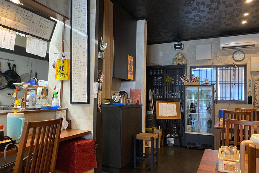4人がけくらいのテーブル席が3卓にカウンターは3席くらい。けっこうゆとりのあるレイアウトになっています。