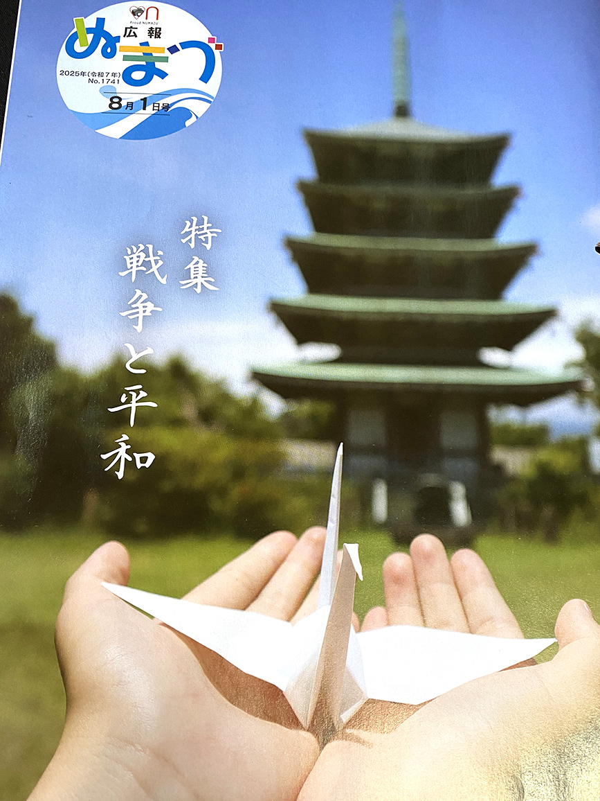 今年は戦後80年ということで、戦争と平和がテーマの特集だそうです。表紙は香貫山の香陵台っぽいですね。ここの五重塔は慰霊塔になっていて、3,383柱もの位牌が安置されているんだとか。