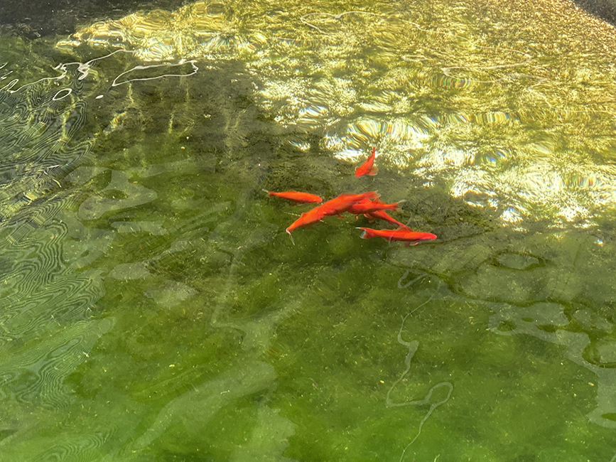 これまでもたくさんの湧水スポットを発見してきましたが、こんなに立派な湧水スポットあったかしら。金魚が10-20匹くらい気持ちよさそうに泳いでいます。