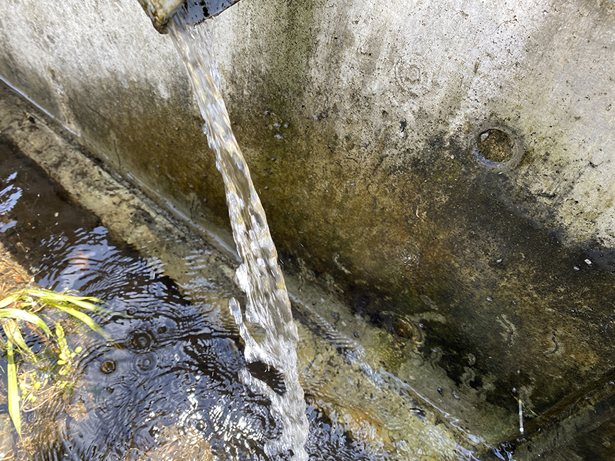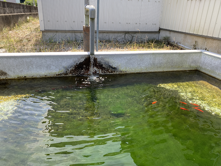 3メートル四方くらいの水槽に一定のリズムで湧き水が流れ込み、そしてまた水路に流れていきます。