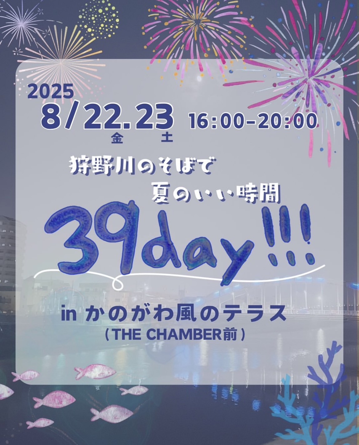 来週8月22日金曜日、23日土曜日 16:00~20:00は 39DAY!!!かのがわ風のテラスに遊びに行ってみよっと♪詳細はマタハリInstagramをチェック。