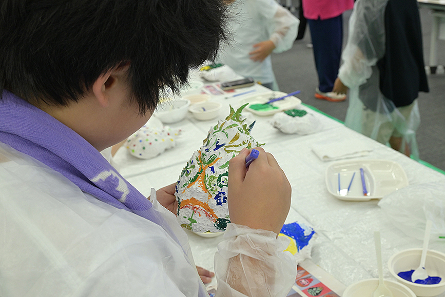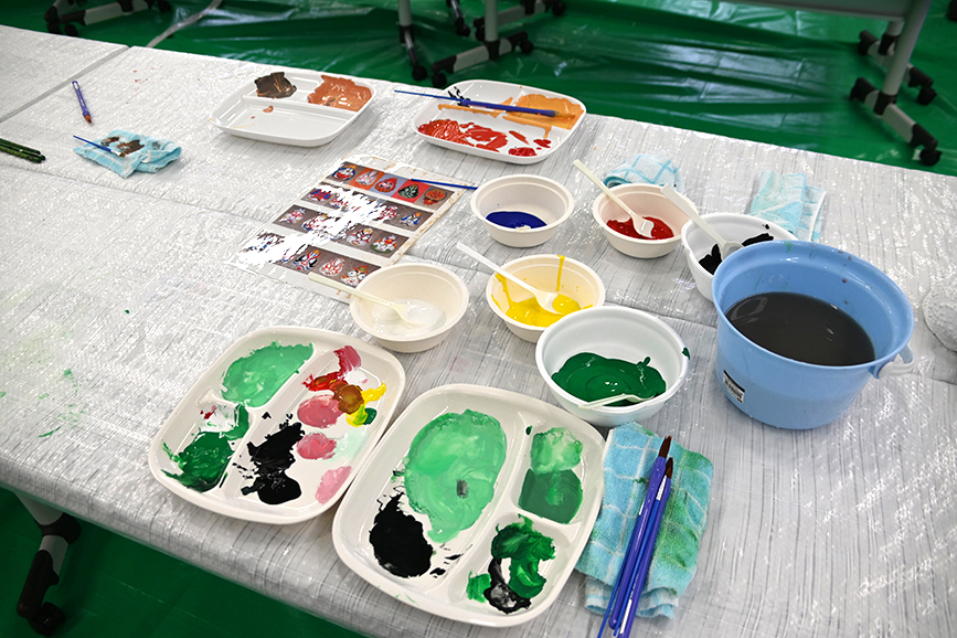 いろんなお面があるんですねー。けっこうカラフル。期間中、松城家住宅(水曜は定休日)でも絵付け体験ができるんだとか。予約不要でふらっと立ち寄れるのがイイですね。ただ、混んでたりすると待つ可能性もあるので、訪問時間が決まっているのであれば事前に電話しておくのもいいかもしれません。