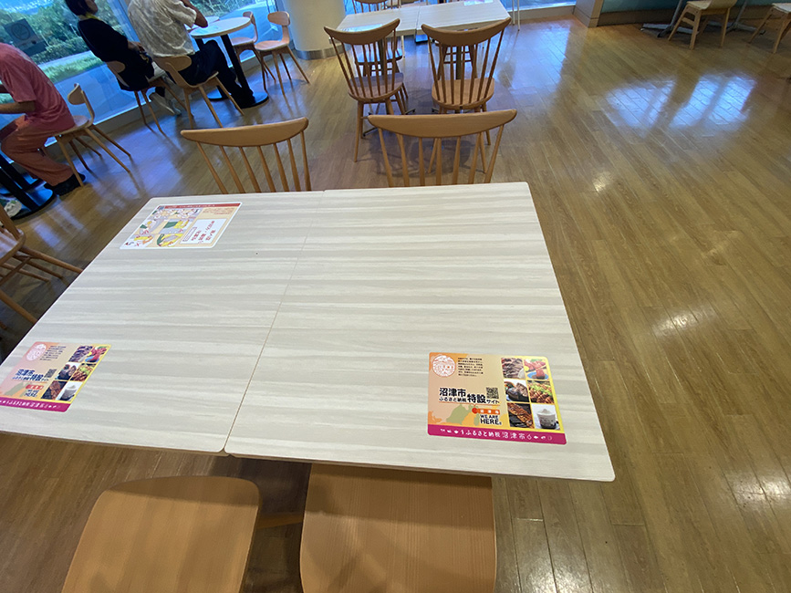 広々としたドッグランもあるから、お犬にとっても楽しみなサービスエリアといえるかも。現在、下り線のフードコートのテーブルに沼津市のふるさと納税をPRするステッカーがなんと70枚も貼られています。