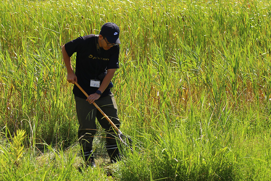 たとえ晴れていても、長靴と濡れてもいい服、これ鉄板。けっこうイケそうと思って湿地帯なのでスニーカー程度の装備でいくと、必ず滲みてきますよ。参加には事前申込が必要です。