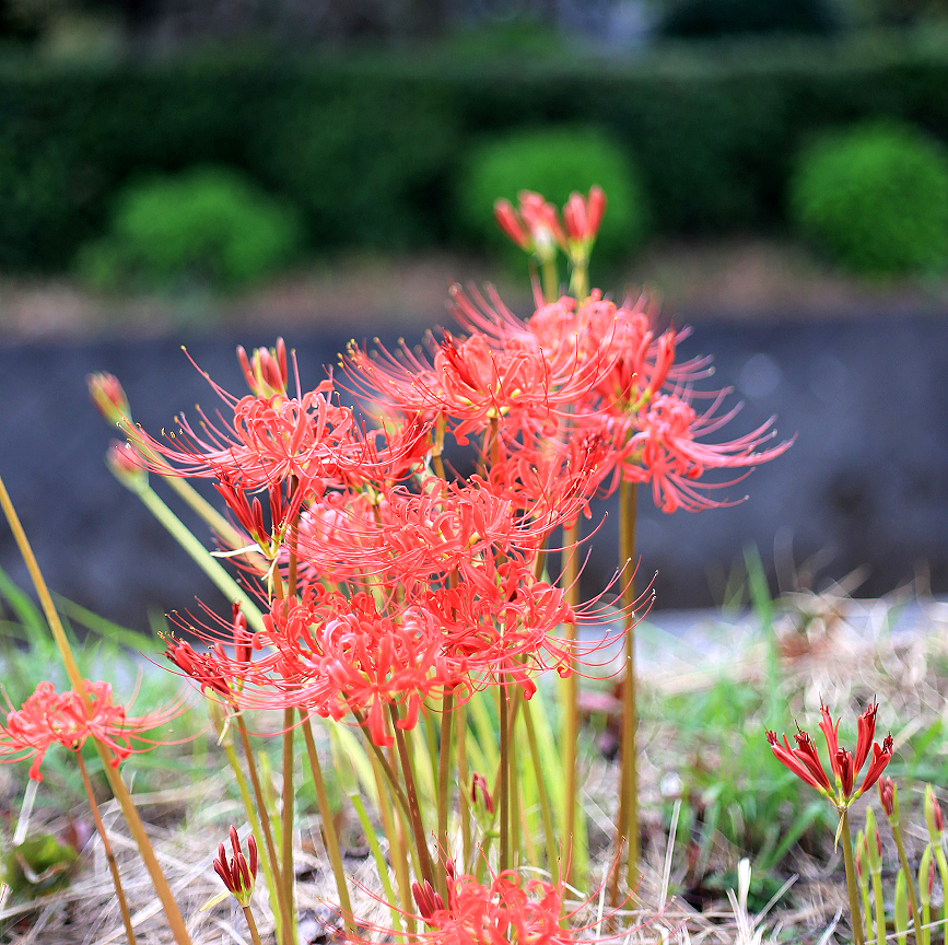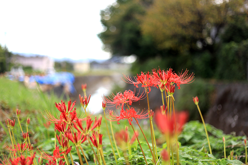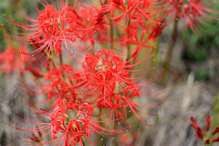 ここ数年は花の行列はちょっと落ち着き気味ですが、それでもじゅうぶんキレイ。彼岸花の名所といってもよさそうですね。誰かがお手入れしてくれてるのかしら。