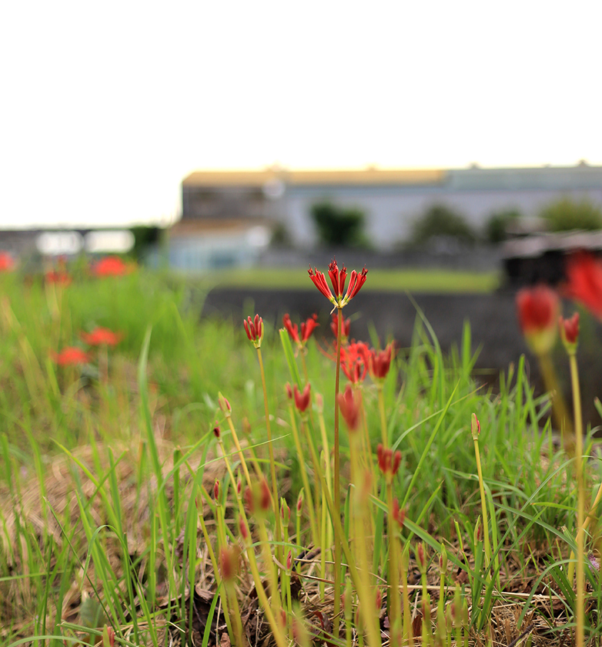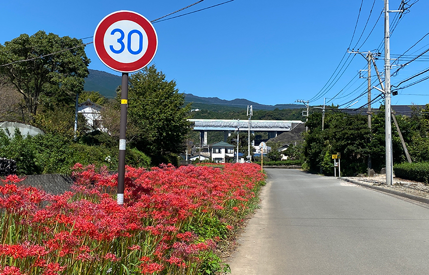 沼津の西部地区、愛鷹・浮島・原地区なんかは田んぼも多く自然もいっぱいなので、群生してなくても彼岸花を見かけることがあります。