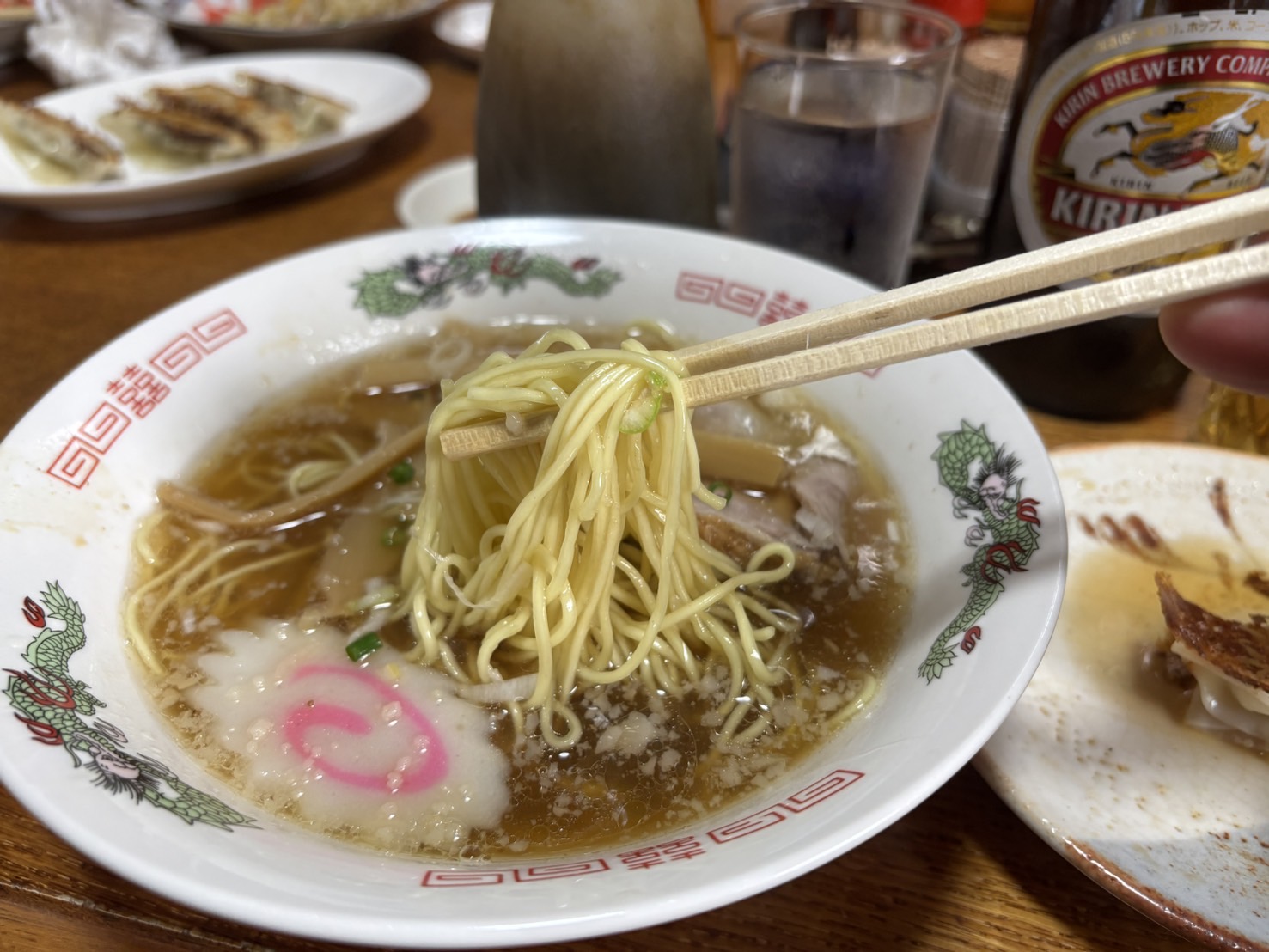 【ぬまつーグルメ】いなだ苑のラーメン半チャーハン。細麺をアツアツのスープからひっぱり出す。一周まわってやっぱりコレ系ラーメンに落ち着く。(沼津市戸田)