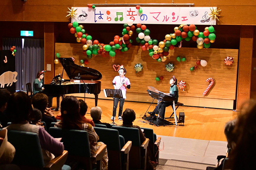 出演は「はら♫音のマルシェ」の皆さん。ピアノ、エレクトーン、鍵盤ハーモニカにバレエも加わるという贅沢ステージ。