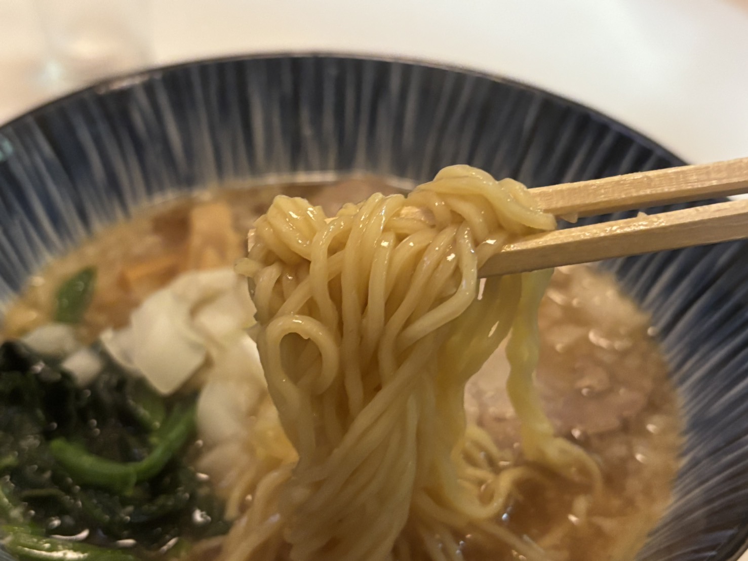 麺は細麺ストレート。醤油スープと背脂が絡んで・・・うまー。一緒に食べに行ったお友達は、塩ラーメンを注文。一口もらったんだけど、こちらも背脂が入ってて、さっぱりしすぎないコクある系でおいしかった。〆に塩ラーメンって、なんか大人。
