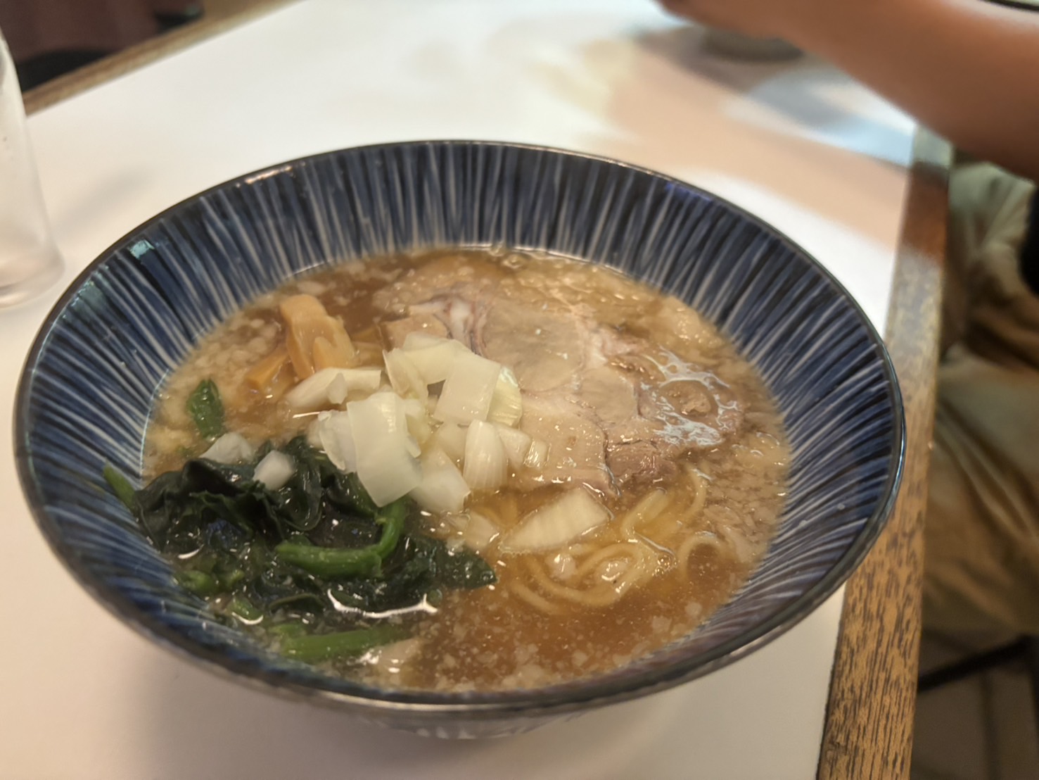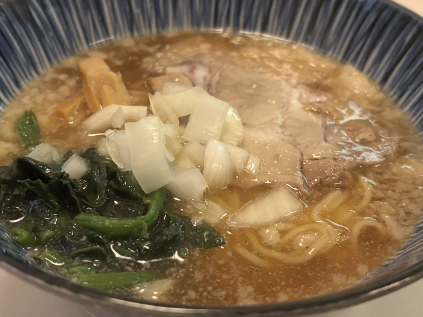 醤油ラーメン、キター。背脂がいい感じにスープに浮いてる。うまそー。この日は〆のラーメン。夜中2時ということもあり酔っぱらっていてメニューは取り忘れてしまった笑。