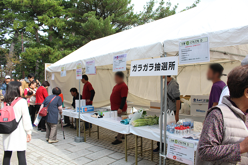 戸田さんさんまつりといえば!みかんや干物をはじめ、個性豊かな特産品があたっちゃうガラガラ大抽選会!本数も多いし、種類もたくさん。秋の運試しにチャレンジしましょう!
