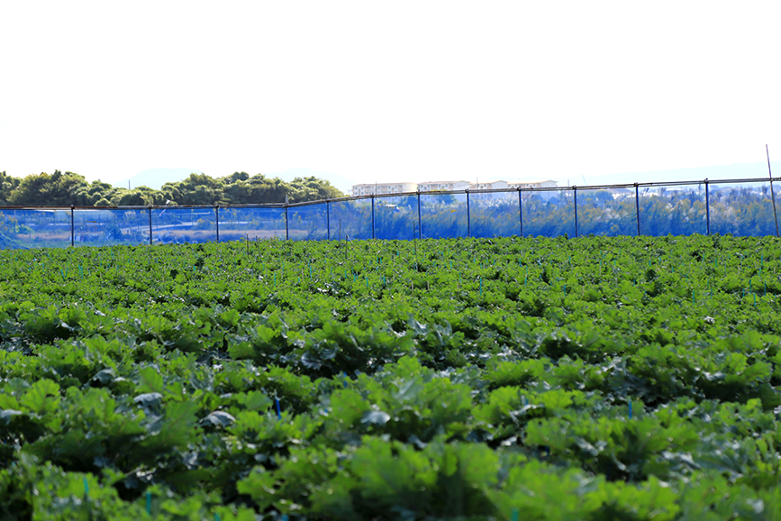 近くの畑には葉物野菜がぐんぐんと生育中。これはプチヴェールかな。何気ない風景ですが、浮島地区ではいろんなアプローチで秋の気配を感じさせてくれます。