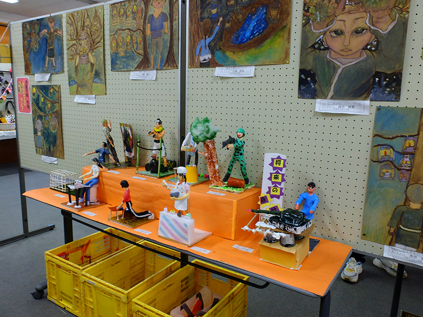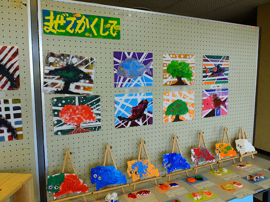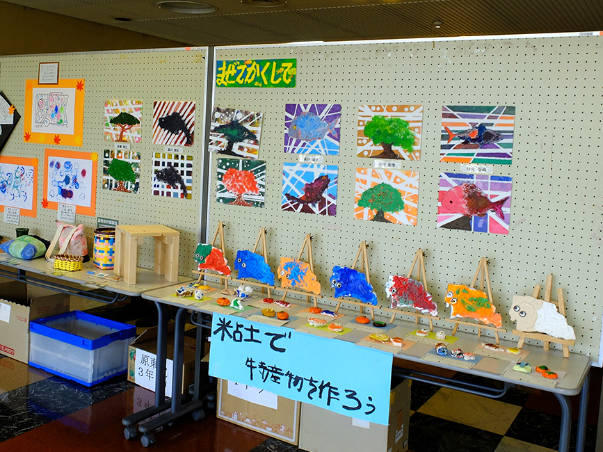 地区センターに入ってみると、原地区の人たちや地元のキッズの作品がずらりと展示されています。こういうの見ると、なんかほっこりしますよねー。