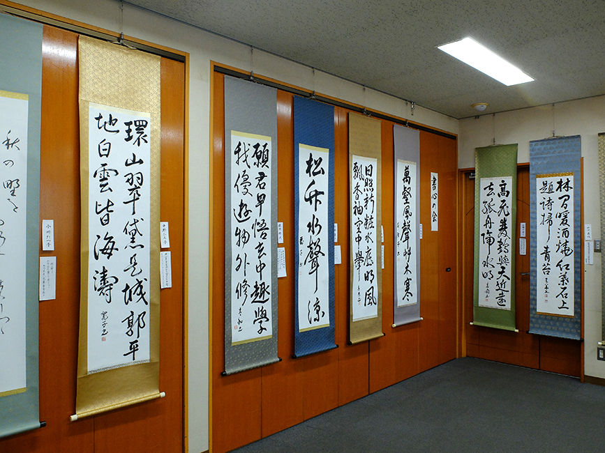 原中学校の生徒たちの習字作品も。見てるとなんだかいくーつもーのー♫って栄光の架橋を歌いたくなるくらい勢いのある作品が並びます。