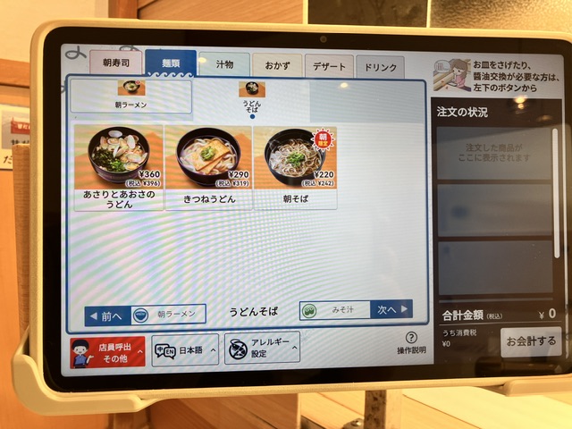 この日、僕は朝限定の朝そばとまぐろ・アカイカ二種盛りをオーダー。