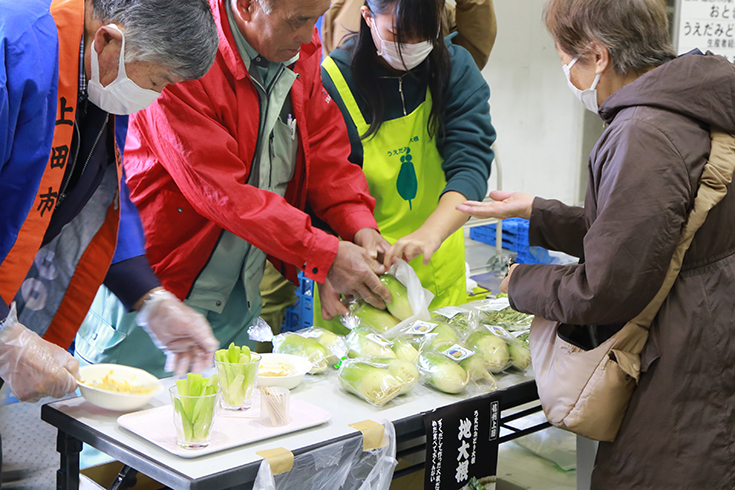 お買い物といえば、沼津をはじめ地元の野菜だけじゃなくて、沼津市と交流のある長野県上田市の特産品の販売もあるんですよ。原ひろし@ぬまつーは上田市のみどりだいこんをおすすめしてもらったのですが、おいしい食べ方が焼いて食べる!ってことでおうちで大根ステーキにしたらめちゃウマでした!今年もあったら買おうと思ってます。