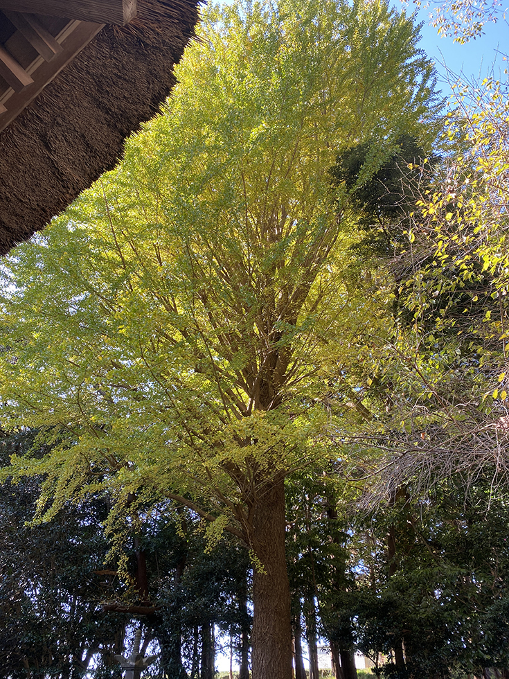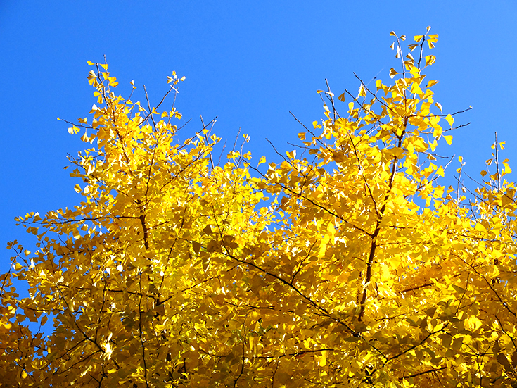 駐車場にあるイチョウの木は真っ黄色。けっこうな迫力です。