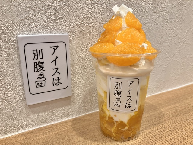 クリームとアイスの間にも、みかんソース。