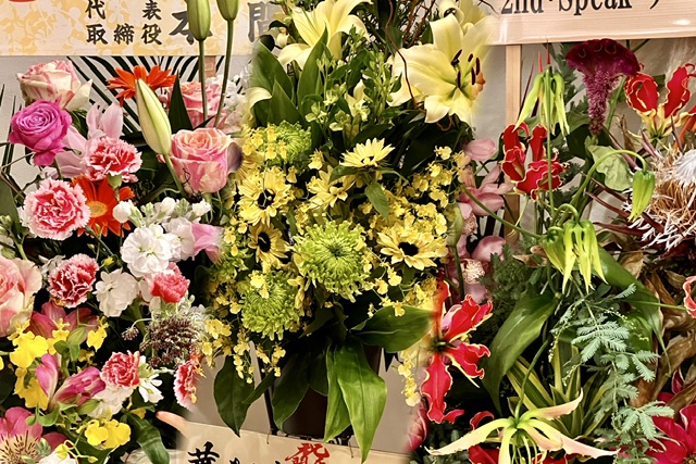 きれいな店内には、開店祝いのお花がたくさん。