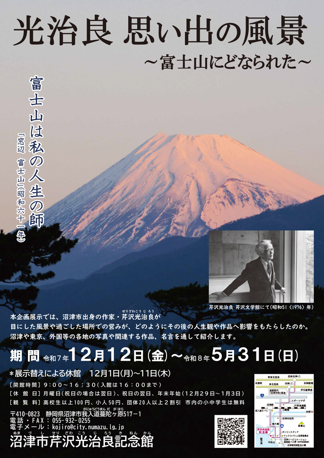 沼津市の名誉市民の一人、芹沢光治良が見た沼津、富士山、市内や東京、さらには海外の景色まで。写真や資料、文章を通して、「風景が作家の人生観や作品にどう染み込んでいったのか」をたどっていく内容になっています。