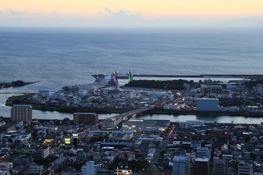 沼津港のアイコニックなシンボルとなっていて、昼は質実剛健なフォルムで夜になるとライトアップされて夜景スポットとしても人気です。このびゅうおの夜景が、昨年末に日本夜景遺産に登録されました!