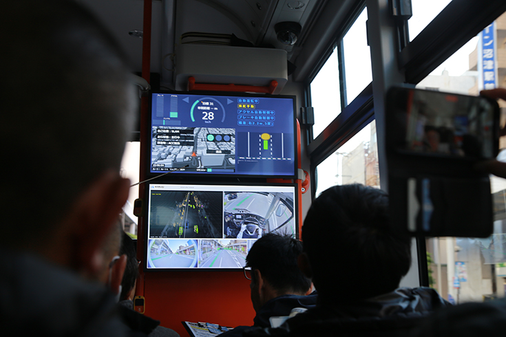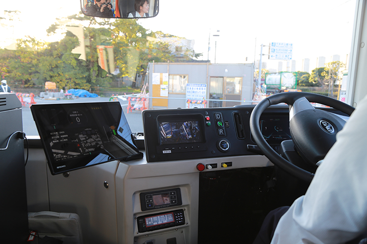 去年、お声がけをいただき体験乗車させてもらいましたが、運転士さんがハンドルを握らなくてもういーんて曲がっていく様子はなんか不思議な感じでした(運転席には人が座ってる)。