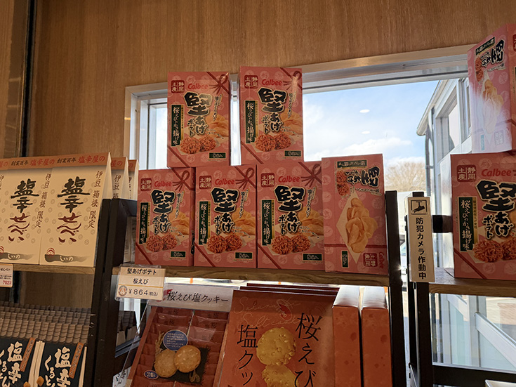 満腹になったところでおみやげコーナー(買う予定はないけど)をふらふらと。桜海老の堅あげポテトが気になるな。ちなみに、崎陽軒のシウマイも売ってましたよ。
