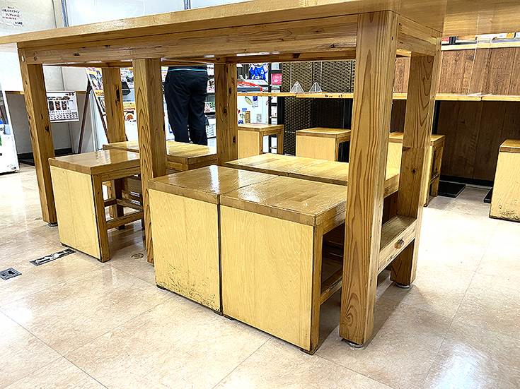 前は工作室にあるようなテーブルと椅子が並んでいましたがシュッとした感じのフードコートになりました。前の感じもあれはあれでよかったな。